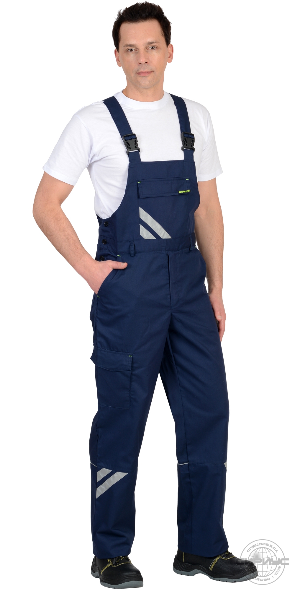 Описание: Полукомбинезон застежкой гульфика на тесьму - "молния" с боковой застежкой на пуговицы, с различными функциональными карманами, с элементами из СВ кант и СОП, обеспечивающие безопасность работы в условиях пониженной видимости. ГОСТ 27575-87