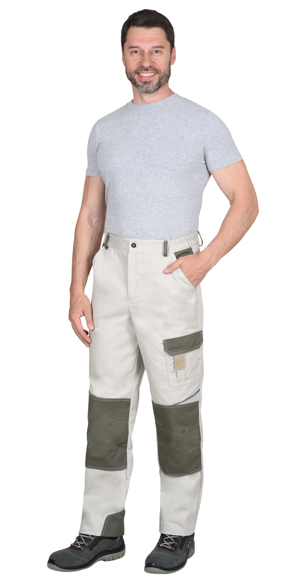 Описание:Брюки с застёжкой гульфика на тесьму «молния», с притачным поясом, застегивающимся на пуговицу, частично стянутым резинкой ткацкой по бокам. Изделие с различными многофункциональными карманами и объёмными наколенниками. В брюках предусмотрена фигурная лента светоотражающая СОП для обозначения сигнальной видимости. |