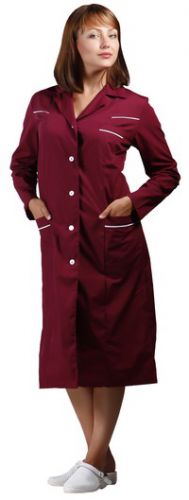 Халат на пуговицах полуприталенного силуэта с длин. рукавами, изготавливается из смесовых тканей.