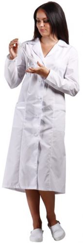 Особенности модели: халат на пуговицах, полуприталенного силуэта с длинным рукавом, английским воротником.