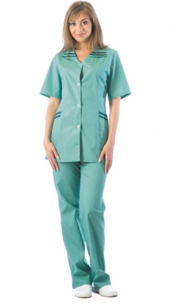 с отделкой по воротнику и нижним карманам. Брюки с резинкой.
