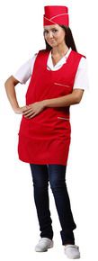 550 руб Описание:Комплект состоит из фартука-сарафана на завязках по линии талии с тремя накладными карманами и пилотки. |