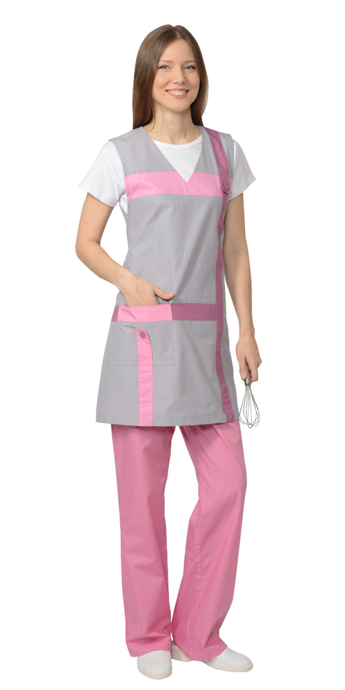 Комплект "Галатея" женск.- фартук+брюки серый с розовым