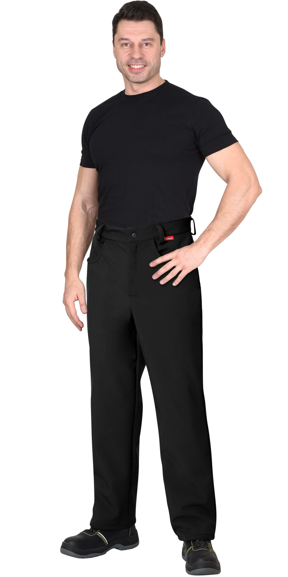 Описание: Брюки прямые, на притачном поясе, с застёжкой спереди гульфик на тесьму «молния». Брюки с боковыми внутренними карманами фигурным входом, на задних половинках с отрезной кокеткой. Ткань верха - «Софтшелл» состав: 100% п/э.; пл. 350 г/м ГОСТ 25295-2003 |